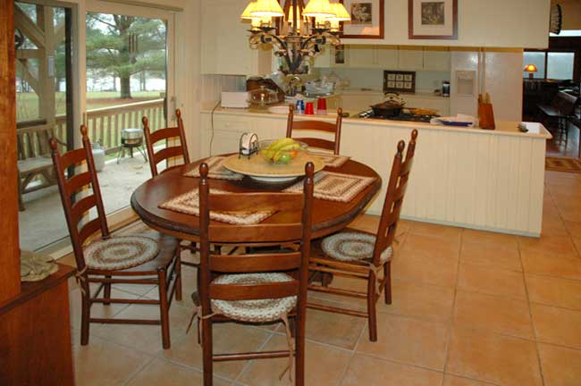 The lodge has been meticulously restored and decorated. The interior is paneled with different hardwoods harvested and milled on the farm, and both interior and exterior walls feature crab orchard stone quarried on the farm. Furnished with antiques and authentic mission-style furniture, the decor enhances the comfort and simple elegance of the lodge in its rural setting.